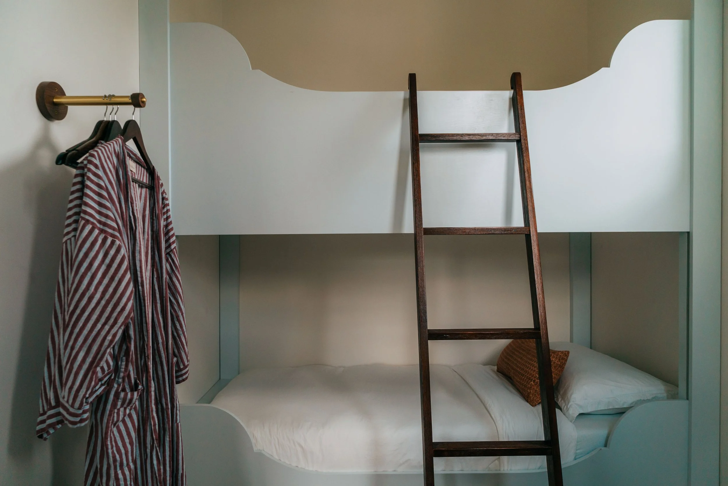 Studio BKA proposed this means of construction after brainstorming with the owners, discussing their design goals and love for humble South American architecture. Stained white oak wood flooring is laid in a herringbone pattern throughout the 2nd and 3rd floors.